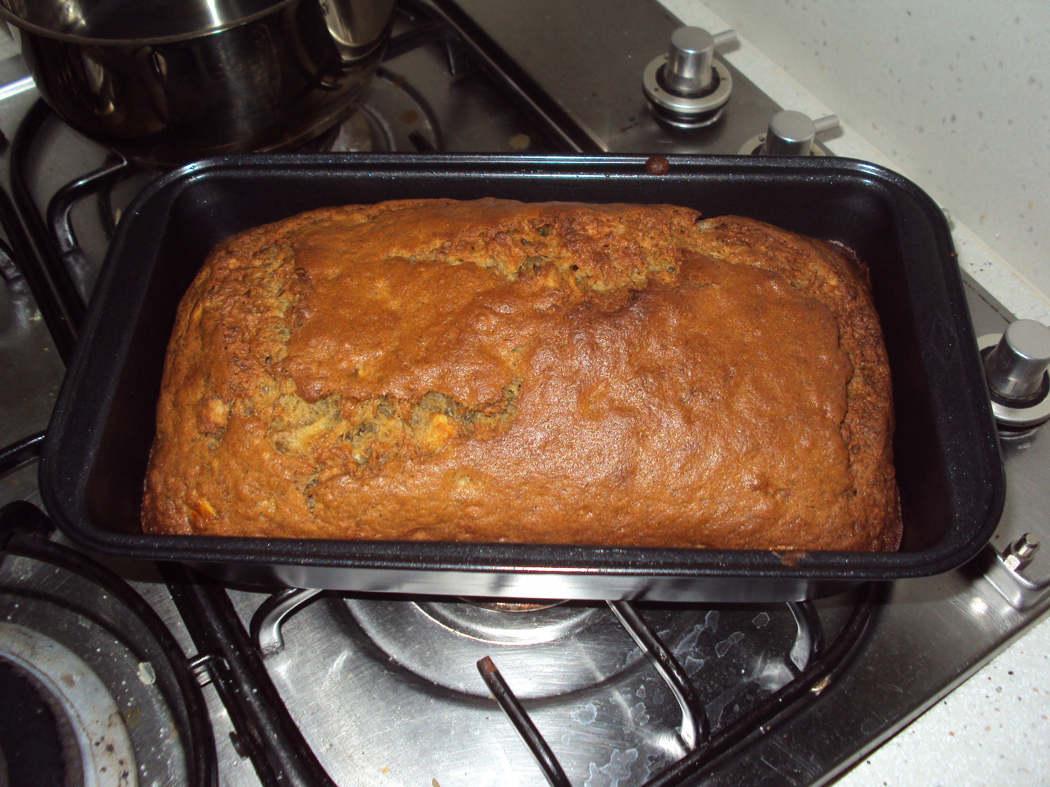 After the toss. Three quarters of the ingredients usually end up on the table. And you end up apologizing to the waiters for the mess.