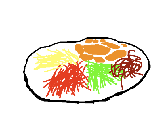 Before the toss. Excuse the horrible drawing. It actually looks quite appetizing in real life.